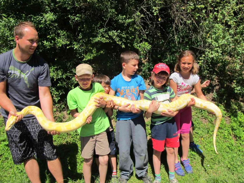 Mnoho zajímavostí ze života plazů jsme se dozvěděli od chovatele, který nám do školy přivezl dvě krajty.