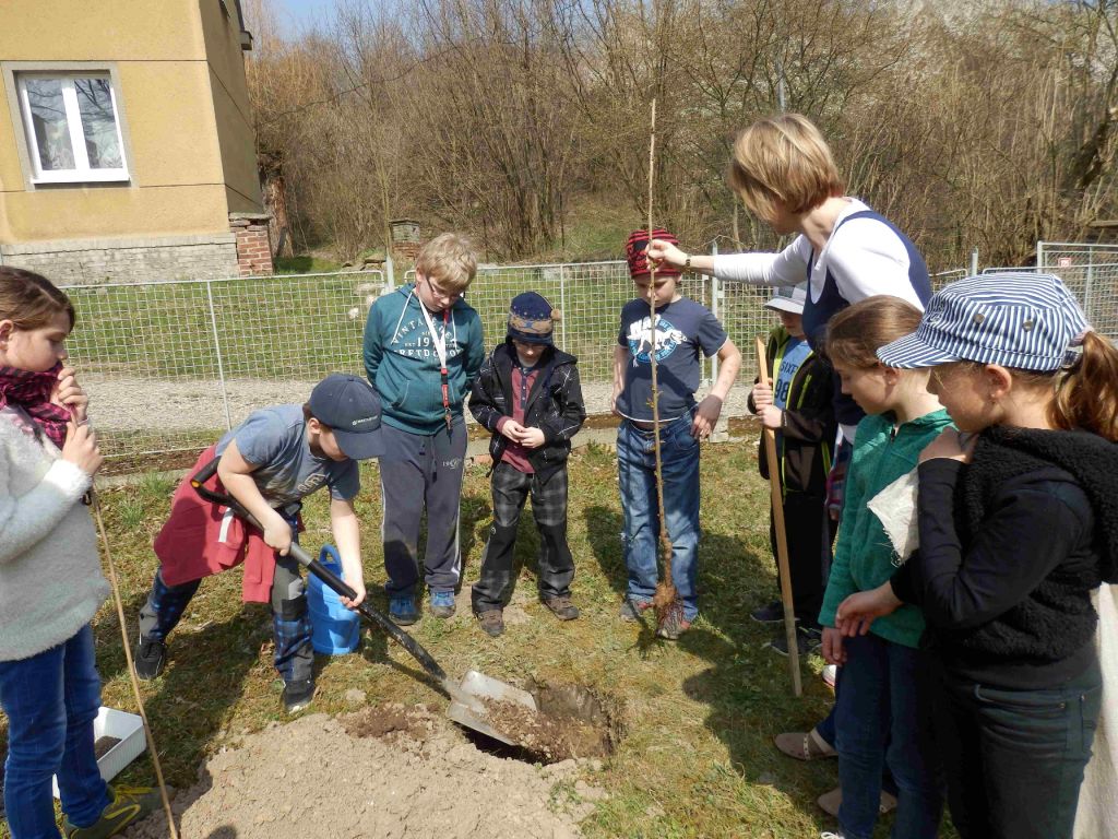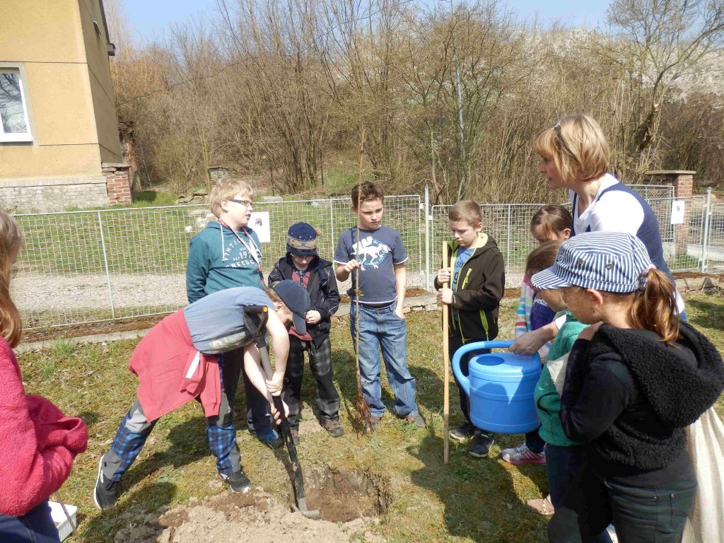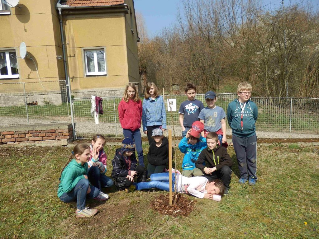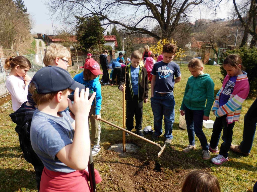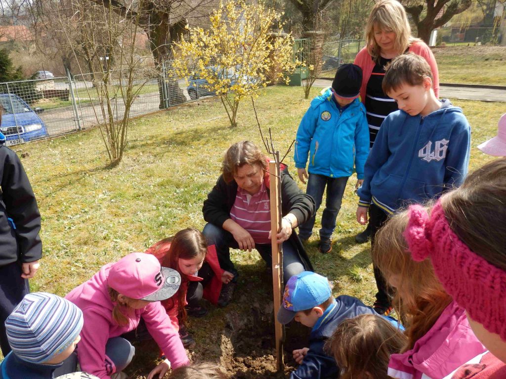 O třešni budou pečovat děti z 3. a 4. ročníku. Snažíme se tak nahradit starou třešeň, která není v dobrém stavu