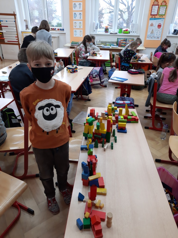 Stavby z různých materiálů (plast, molitan, dřevo), vázaná zeď.